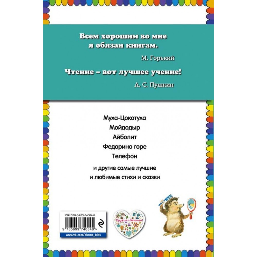 Вірші та казки Корнія Чуковського сповнені гумору, сміху, виховних моментів, що допомагають дітям зрозуміти і запам'ятати правила, корисні в житті. Адже запам'ятати, що "треба, треба вмиватися вранці та ввечері..." набагато простіше й веселіше з віршами Чуковського. У цій книжці зібрані найулюбленіші дитячі твори: "Муха-Цокотуха", "Мойдодир", "Айболить", "Федорине горе", "Телефон" та інші.
