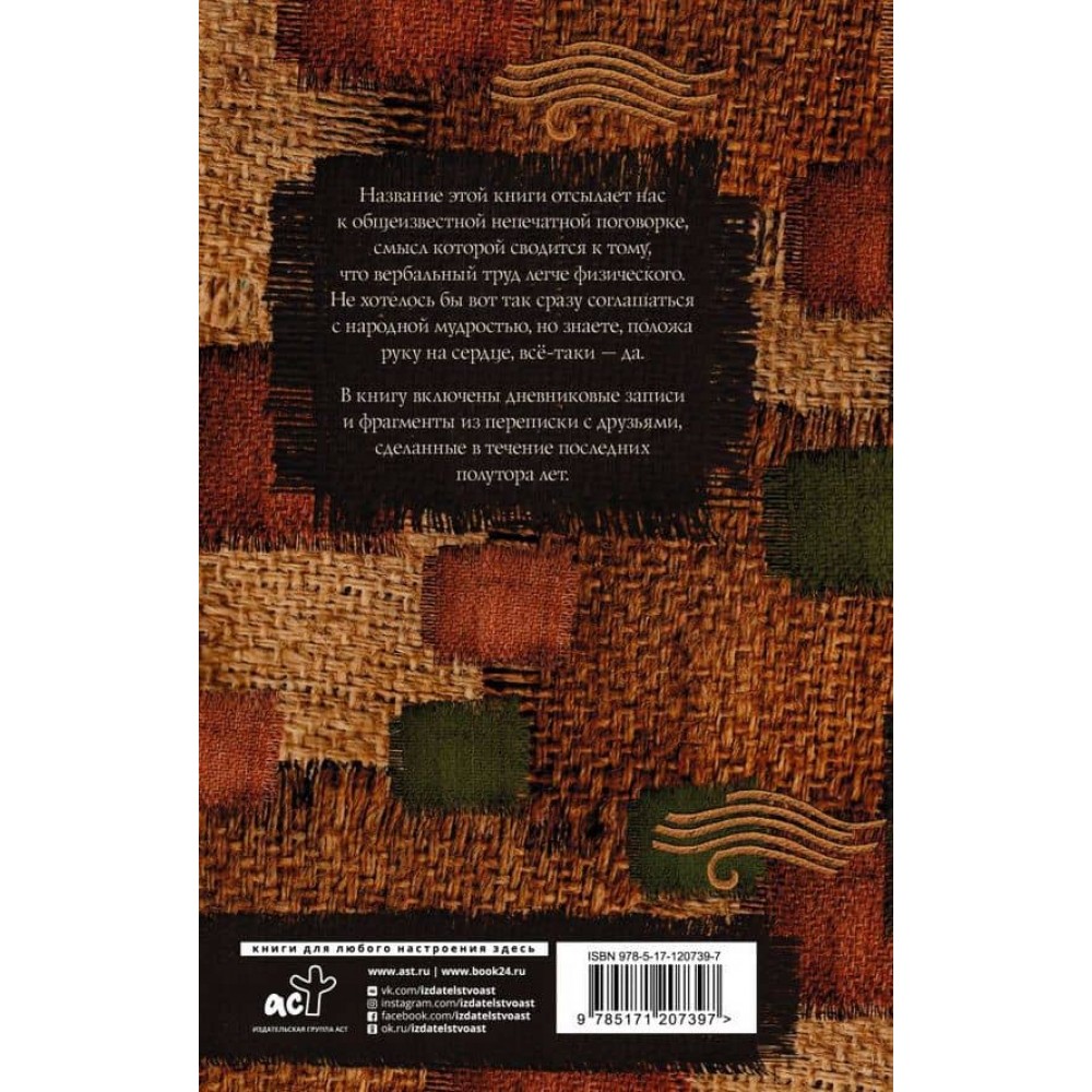 "Назва цієї книги відсилає нас до загальновідомої недрукованої приказки, сенс якої зводиться до того, що вербальна праця легша за фізичну. Не хотілося б ось так відразу погоджуватися з народною мудрістю, але знаєте, поклавши руку на серце, все-таки - так. До книжки включено щоденникові записи та фрагменти з листування з друзями, зроблені протягом останніх півтора року."