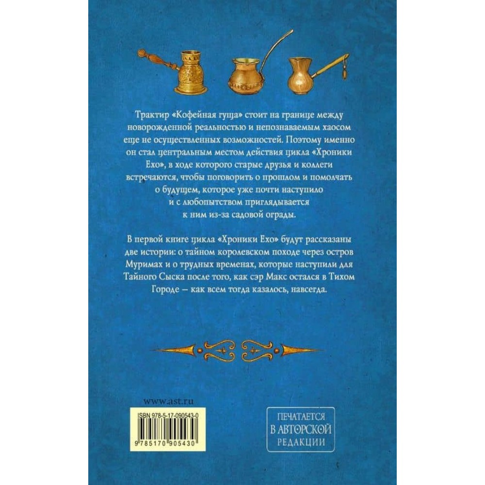 Трактир "Кавова гуща" стоїть на межі між новонародженою реальністю та непізнаваним хаосом ще нездійснених можливостей. Тому саме він став центральним місцем дії циклу "Хроніки Ехо", в ході якого старі друзі та колеги зустрічаються, щоб поговорити про минуле та помовчати про майбутнє, яке вже майже настало і з цікавістю придивляється до них через садову огорожу. У першій книзі циклу "Хроніки Ехо" будуть розказані дві історії: про таємний королівський похід через острів Мурімах і про важкі часи, які настали для Таємного Розшуку після того, як сер Макс залишився в Тихому Місті – як завжди здавалося, назавжди.