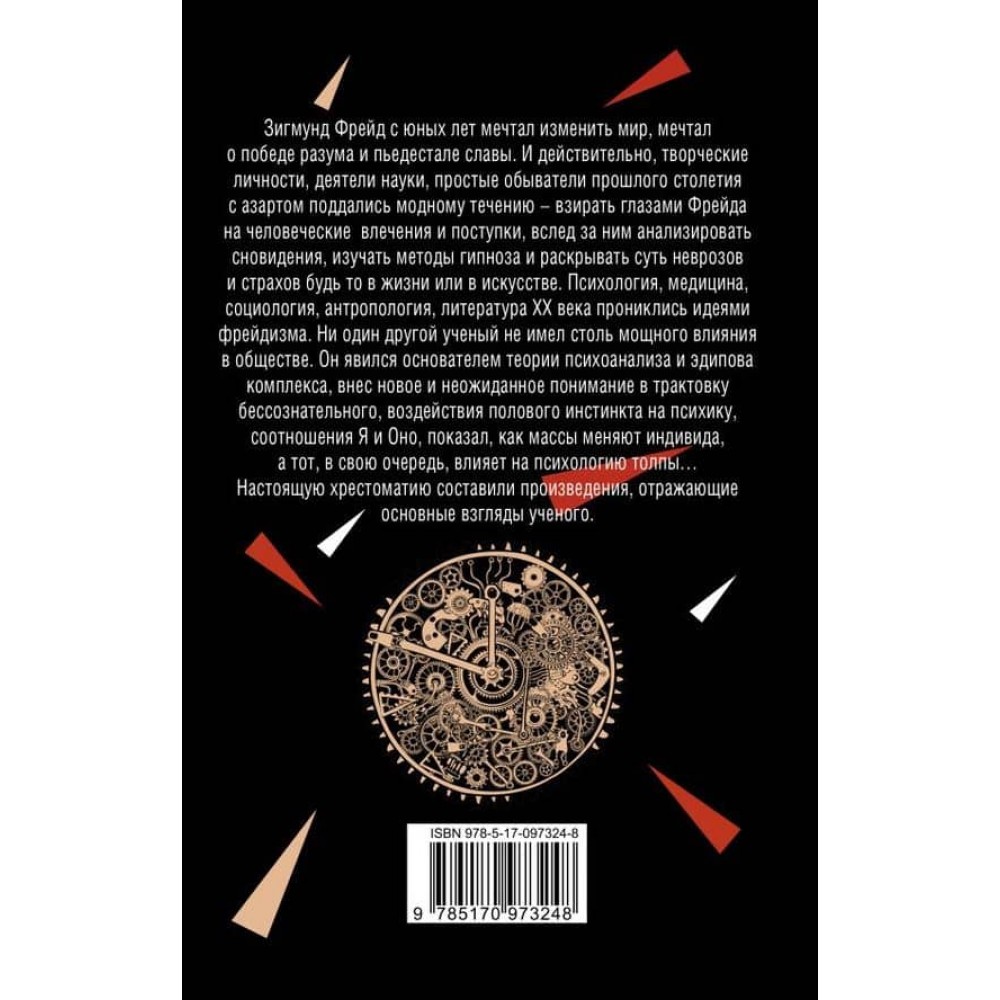 Зиґмунд Фройд з юних років мріяв змінити світ, мріяв про перемогу розуму і п'єдестал слави. І справді, творчі особистості, діячі науки, прості обивателі минулого століття з азартом піддалися модній течії - дивитись очима Фройда на людські потяги та вчинки, слідом за ним аналізувати сновидіння, вивчати методи гіпнозу та розкривати суть неврозів і страхів, будь то в житті або в мистецтві. Психологія, медицина, соціологія, антропологія, література XX століття перейнялися ідеями фрейдизму. Жоден інший учений не мав настільки потужного впливу в суспільстві. Він став засновником теорії психоаналізу та едипового комплексу, вніс нове й несподіване розуміння в трактування несвідомого, впливу статевого інстинкту на психіку, співвідношення Я і Воно, показав, як маси змінюють індивіда, а той, своєю чергою, впливає на психологію натовпу...  Цю хрестоматію склали твори, що відображають основні погляди вченого