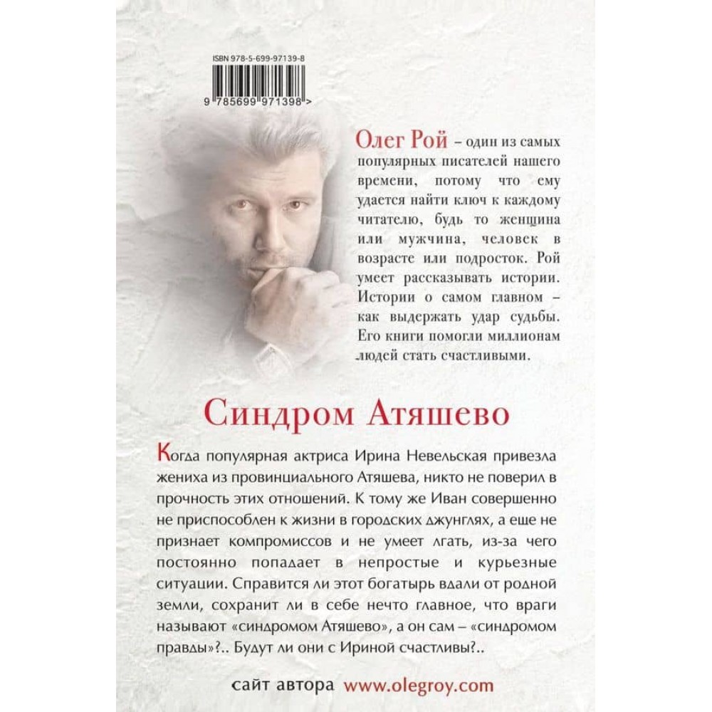 Після відпустки на своїй малій батьківщині популярна акторка Ірина Невельська не тільки повертається до Москви з новою вірою в життя, а й привозить із собою нареченого. Усім гарний Іван Пшеничников, але є в нього той самий "синдром Атяшева", майже хворобливе прагнення до правди і невміння сприймати лукавство в будь-яких його формах. Через це богатир постійно потрапляє в незручні або комічні ситуації, а інколи разом із ним і його наречена. Чи зможе молода сім'я вижити та досягти успіху у великому місті? Особливості Довгоочікуване продовження роману "Доньки-матері, або Канікули в Атяшевому". На відміну від інших, складніших і напруженіших творів Олега Роя, тут немає надто крутих поворотів сюжету, але є дуже тепла і затишна атмосфера. Для тих, хто звик вважати автора лише майстром багатошарової психологічної прози, новий роман - чудова нагода оцінити й полюбити його талант створювати легкий авантюрний настрій.