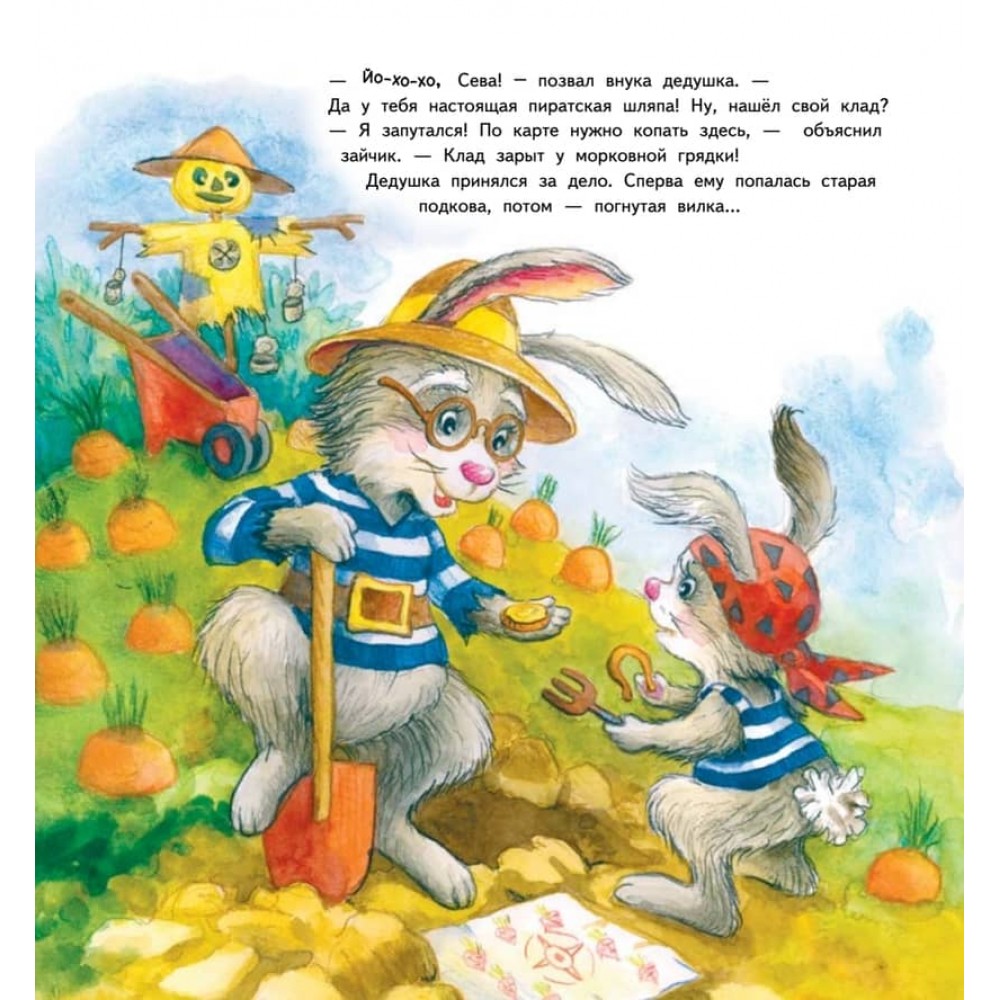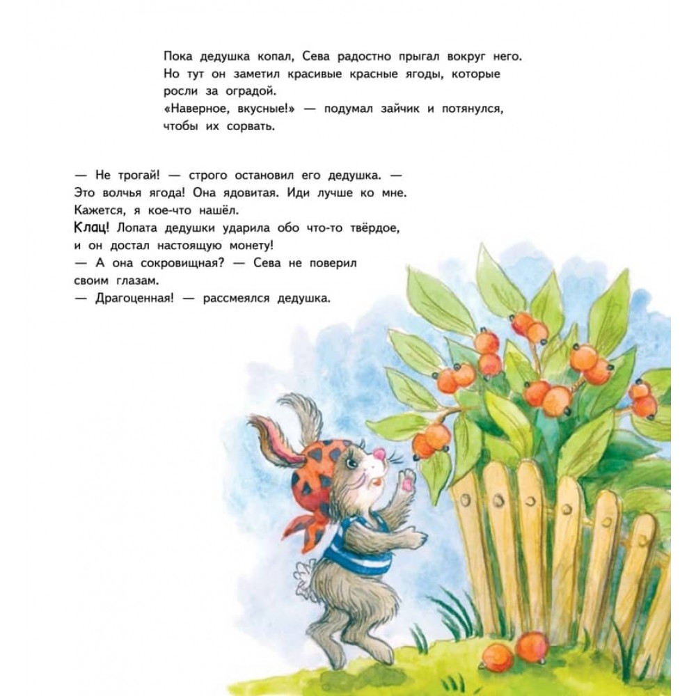 Чим найкраще зайнятися влітку? Звичайно ж, вирушити на пошуки пригод! Наприклад, до бабусі в село - адже там можна знайти справжні скарби! У новій книжці зайчик Сева їде в гості до бабусі та дізнається, навіщо одягати на голову панамку, як рятуватися від комарів і поводитися біля водойми. Це не просто чудово ілюстровані історії про непосидючого зайчика та його друзів для сімейного читання, а й матеріал для бесіди "Що таке добре і що таке погано". Наприкінці книги пропонуються запитання, складені дитячим педагогом-психологом для обговорення з дитиною. Книга рекомендована батькам, вихователям, педагогам. Корисні казки виховують дитину без крику та покарань! Для читання дорослими дітям.