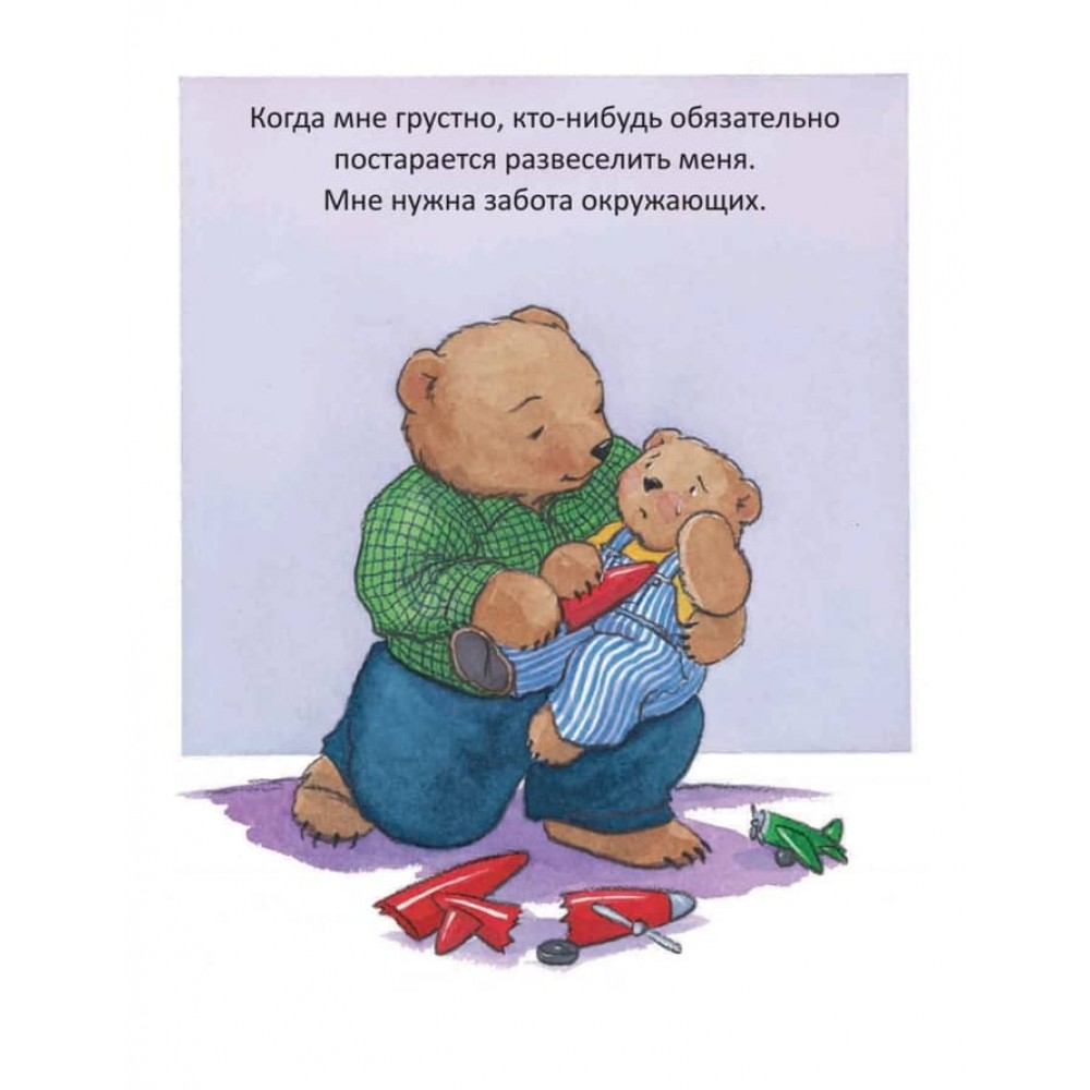 За допомогою цієї книжки ваш малюк побачить і зрозуміє, що, коли він хворий, скривджений або незадоволений, інші люди піклуються про нього. Разом із маленьким ведмедиком дитина дізнається, що оточуючі потребують догляду так само, як вона сама.