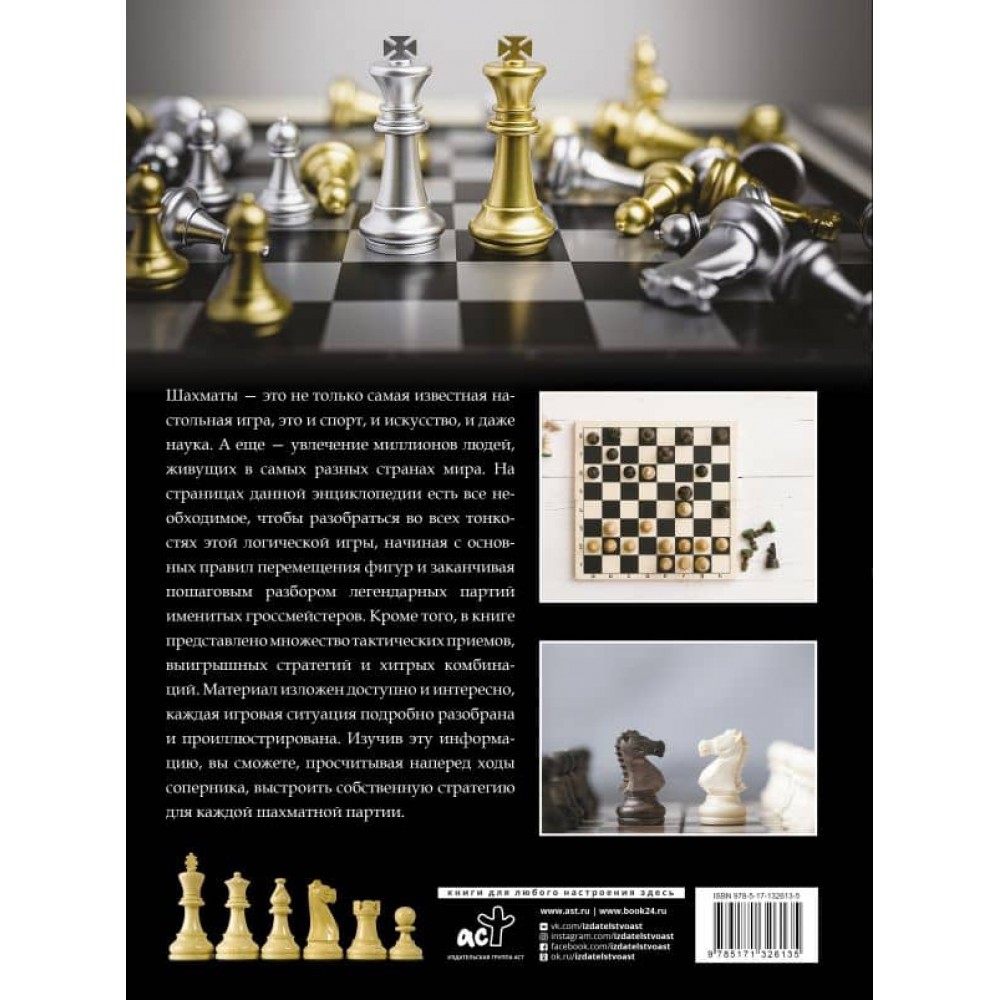 Шахи - захоплення мільйонів людей із найрізноманітніших країн світу. А ще це спорт, мистецтво і навіть наука. Опанувати ази цієї популярної настільної гри вам допоможе ця книга. Термінологія, найважливіші поняття і правила гри, найвиграшніші тактичні прийоми і комбінації - все це ви знайдете на сторінках цієї великої енциклопедії. А поради від відомих гросмейстерів і проілюстровані приклади шахових партій дадуть змогу вам, вибудувавши власну стратегію гри, виходити переможцем із найскладніших шахових партій, прораховуючи наперед ходи суперників і застосовуючи секретні тактичні прийоми.