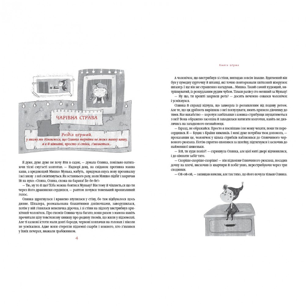 Так починаються ці фантастичні пригоди, в яких Олянка разом з Буциком сміливо береться рятувати Країну нямликів від підступних стіногризів та діркокрутів, дізнається, чому в підвалах старих будинків блукає Привид Здичавілого Сантехніка та про інші неймовірні дива...