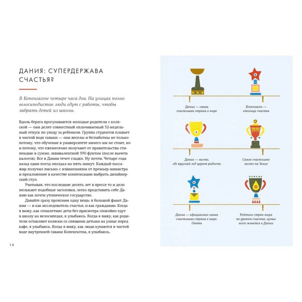 Майк Вікінг, автор бестселера "Hygge. Секрет данського щастя" і засновник Інституту дослідження щастя в Копенгагені, виявив спільні риси у найщасливіших у світі людей. Він знайшов тих, хто зумів додати радості та світла у своє життя, і зрозумів, чого в них можна навчитися. Автор запрошує читача здійснити разом із ним навколосвітню подорож у пошуках безцінних скарбів - ключів від щастя.