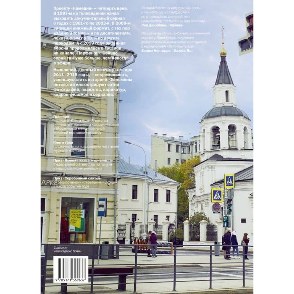 Новий, десятий, тому легендарного проекту Леоніда Парфьонова « Намедни » присвячений 2011 – 2015 років: епосі, яка ще зовсім недавно була нашим справжнім, а тепер перетворилася в історію і може бути розібрана на окремі сюжети і детальним чином проаналізована. Деякі події вже встигли забутися, як, наприклад, перехід країни на літній час ( з подальшим поверненням назад ), а деякі, навпаки, здаються зовсім недавніми, як, наприклад, вихід першої серії епічної саги « Гра престолів », який припав, страшно подумати, на квітень 2011 року, більше десяти років тому. У ці бурхливі роки вклалося неймовірну кількість сюжетів: « Бурановскіе бабусі » вирушили на « Євробачення », Путін розлучився з дружиною і полетів зі стерхами, у всьому світі стали готуватися до кінця світу за календарем майя, 32 ‑ річний Андерс Брейвік зробив найкривавіший теракт в історії Норвегії, в Америці окупували Wall Street, а в Росії вийшли на Болотну площу, символом золотої ери серіалів стала епічна сага « Гра престолів », в Сочі пройшла ХХII зимова Олімпіада, а в Челябінську впав метеорит... Ці та багато інших розібрані в книзі події склали основу нашої, нехай і новітньої, але вже історії.