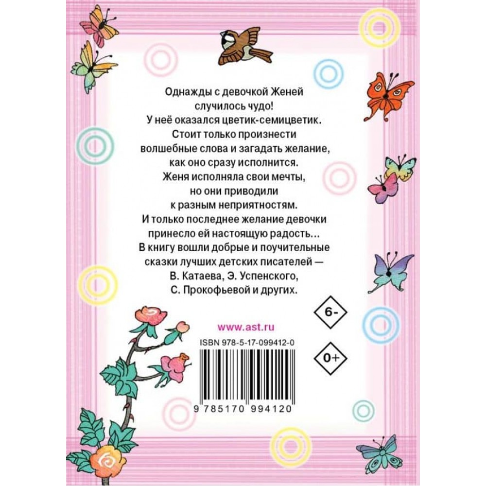 До книги "Цветик-семицветик" увійшли казки найкращих дитячих письменників Е. Успенського, В. Катаєва, В. Осеєвої та інших. Веселі, добрі та повчальні історії навчать малечу доброти та працьовитості, розкажуть про те, як нерозумно лінуватися та хвалитися, а ще розвеселять і подарують любов до цікавих казок.