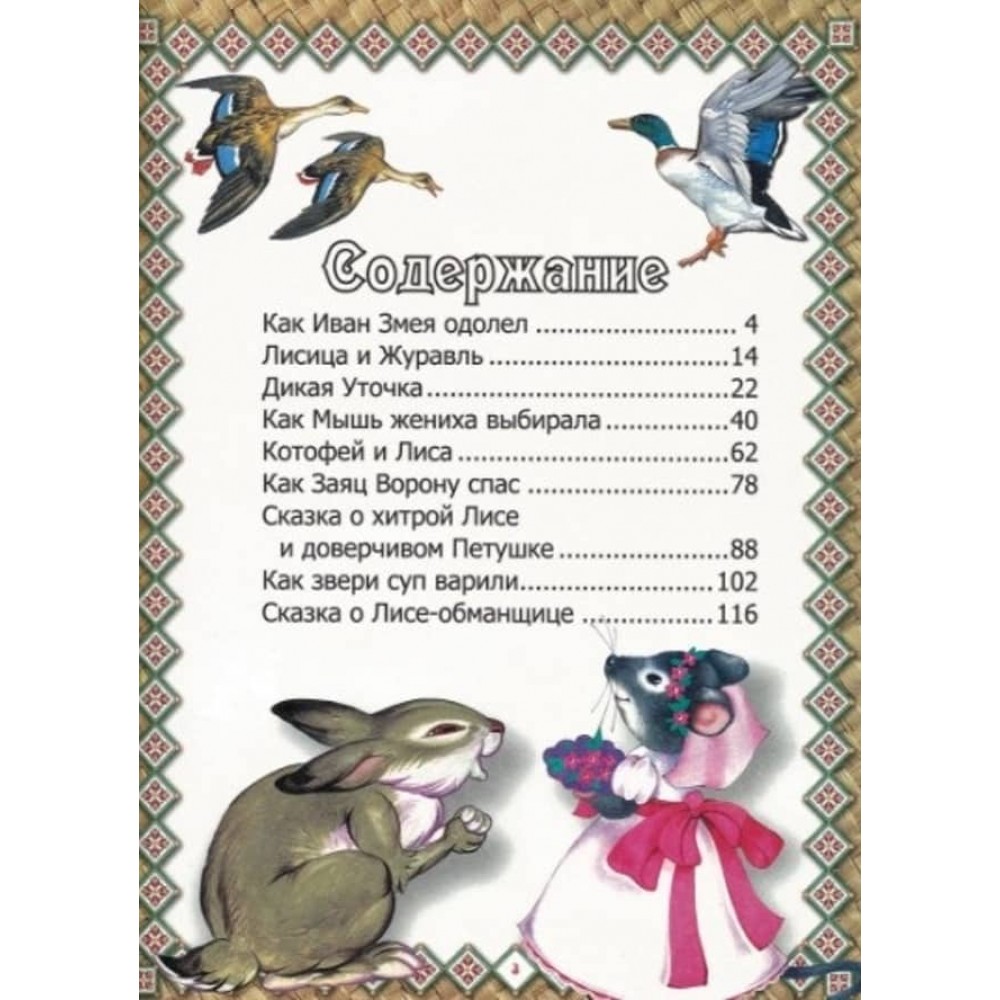 У виданні представлено відомі народні казки: "Як Миша нареченого обирала", "Казка про хитру Лисицю та довірливого Півника", "Як Іван Змія здолав", "Казка про Лисицю-ошуканку" та ін.
