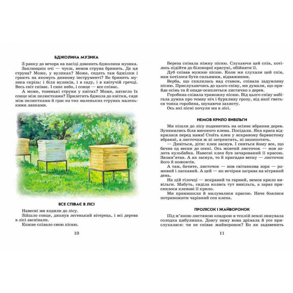 До збірки включено не тільки твори, де дійовими особами є люди (розділ «Дідусева таємниця»). На її сторінках ви також зустрінетеся з олюдненими тваринами, рослинами і навіть природними явищами (розділ «Бджолина музика»). Все це розмаїття образів, життєвих ситуацій та художніх форм допоможе дитині відчути: все, що є у світі, все, що відбувається навкруги, — наповнене такими самими поняттями, що й життя людини.