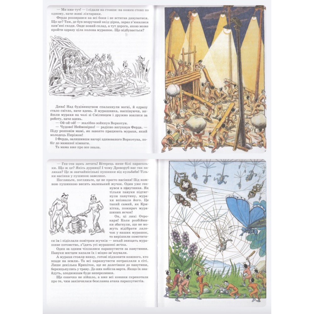 Мурахи справді не здаються. Головний герой книжки — мураха Ферда — не відступає ні перед величезним Павуком, ні перед навалою мурах-рабовласників. А ще допомагає побудувати потужний мурашник та знаходить безліч друзів серед лісових мешканців, перш ніж повертається до рідної домівки.
