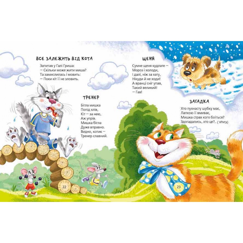 У збірці кращих віршованих історій, загадок, лічилок про домашніх тварин від видатних українських авторів вам не потрібно обирати улюбленців. Кошенята, песики, пташки і миші зібралися на яскравих сторінках книги!