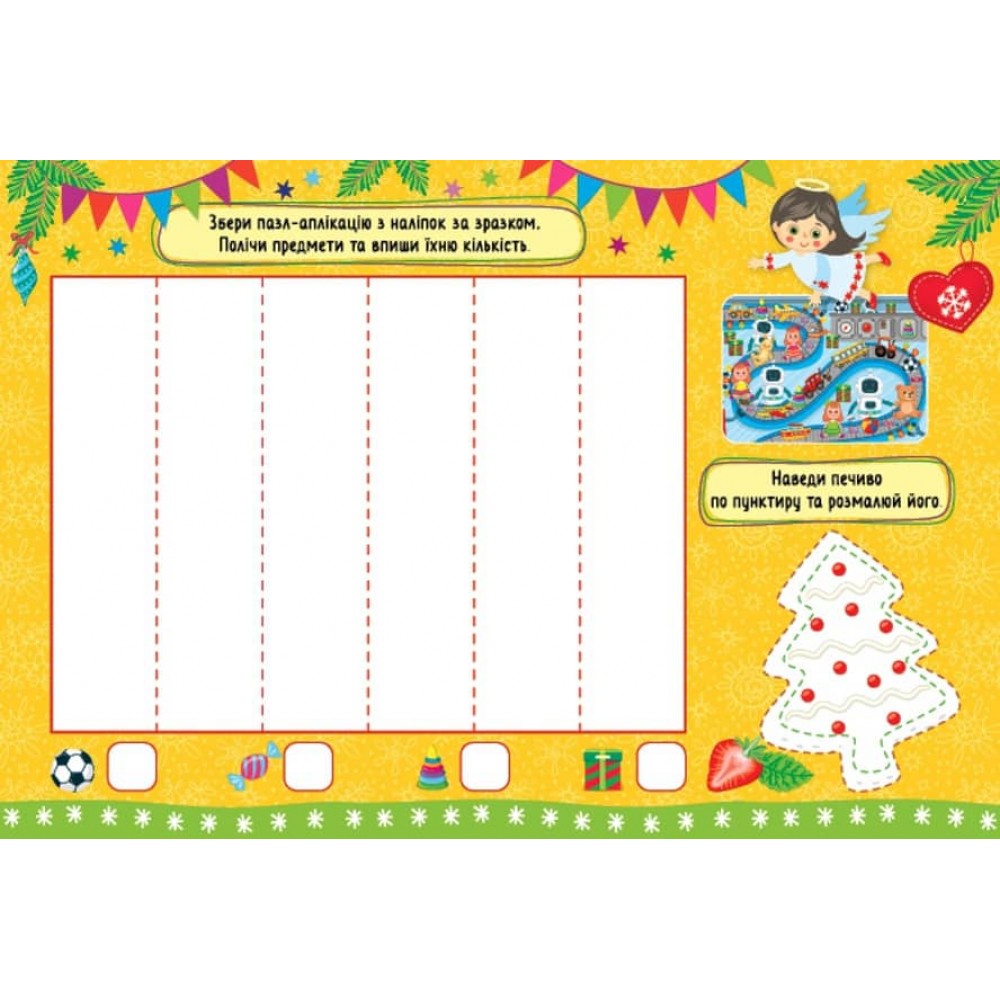 Із серією «Святкові аплікації» дитина зможе влаштувати вдома справжню різдвяну майстерню, адже за допомогою ножиць й елементів-наліпок можна зібрати в родинному колі яскраві пазли-аплікації на веселу зимову тематику. Користуючись покроковою інструкцією, малюк створить неповторні маленькі шедеври, що подарують святковий настрій. Видання серії допоможуть дитині розвинути дрібну моторику, логіку, уяву й творчі здібності, а також повправлятися в лічбі, опанувати навички письма й малювання й удосконалити свої вміння у роботі з ножицями.