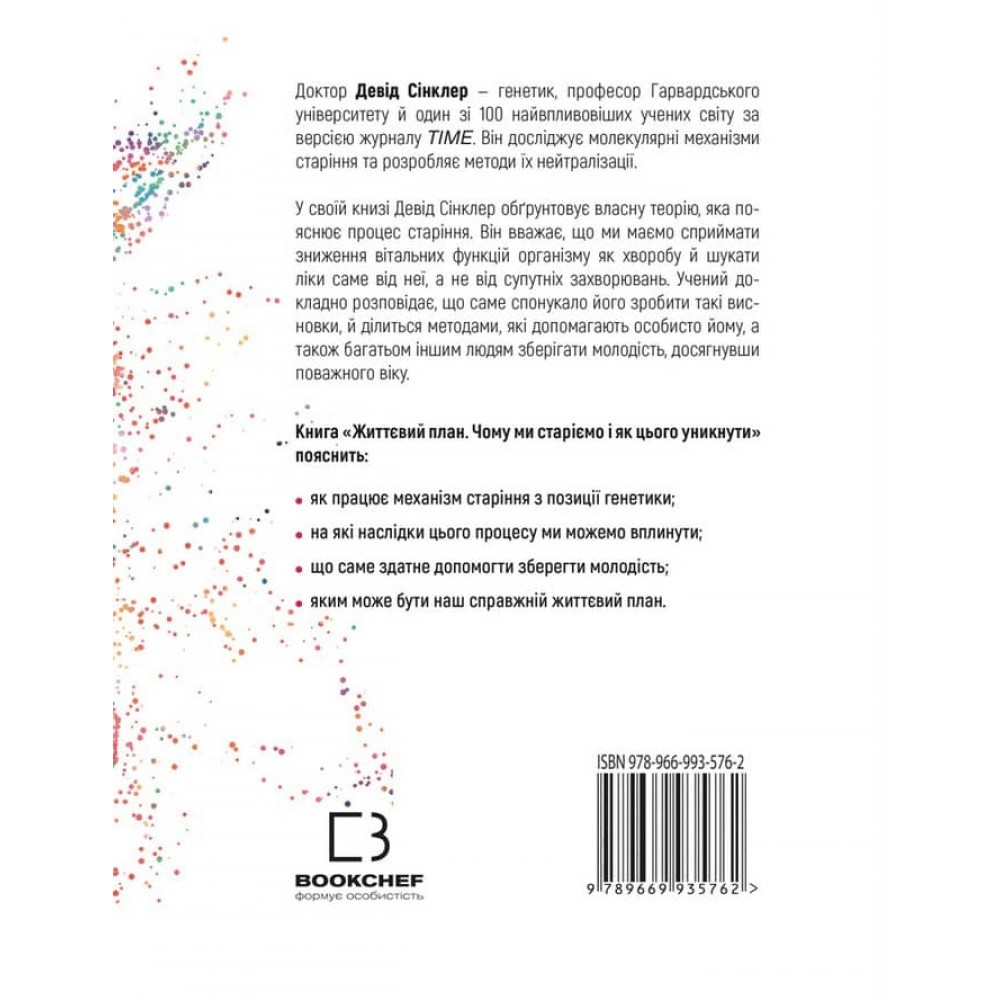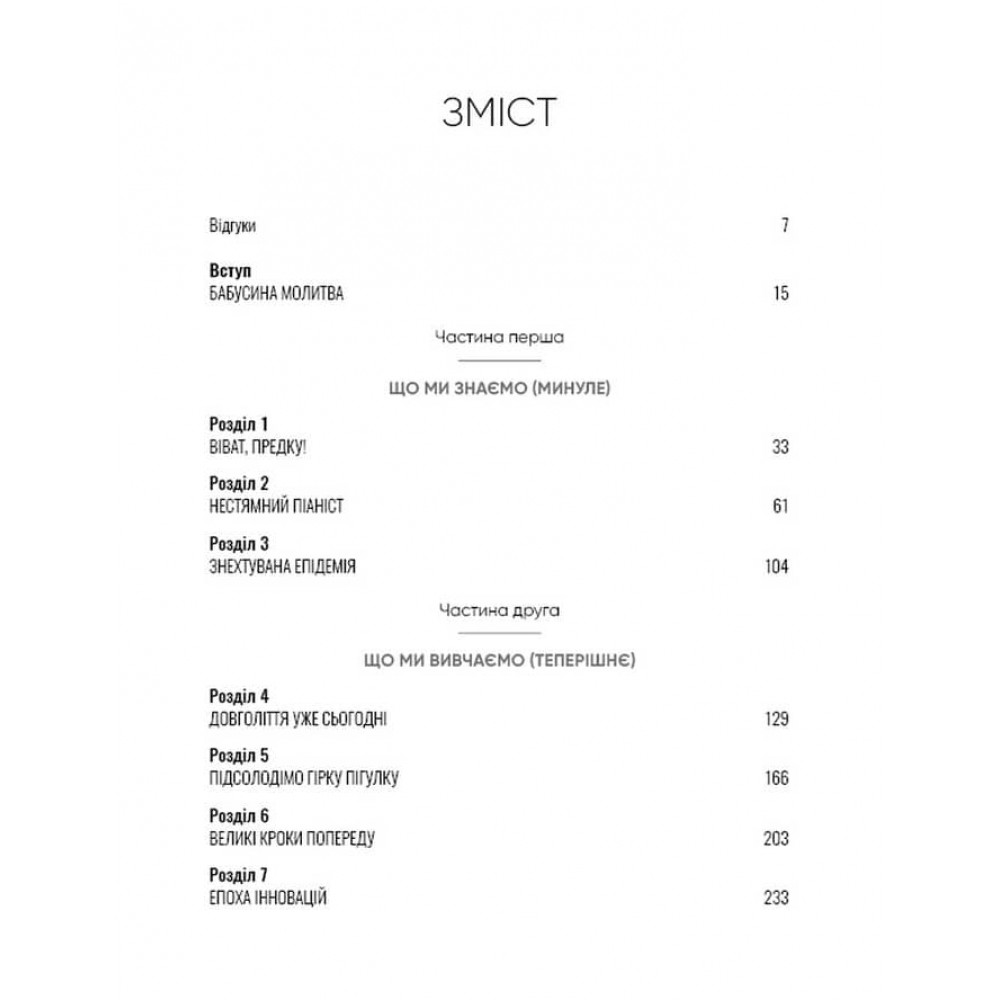 Доктор Сінклер переконливо, спираючись на наукові дослідження, доводить: наші гени — це не наша доля, й ми можемо отримати над ними контроль, а відтак відтермінувати старіння. Насправді зробити це значно простіше, ніж здається: достатньо зменшити негативний вплив на наші клітини й одночасно активувати гени, що відповідають за життєву силу.