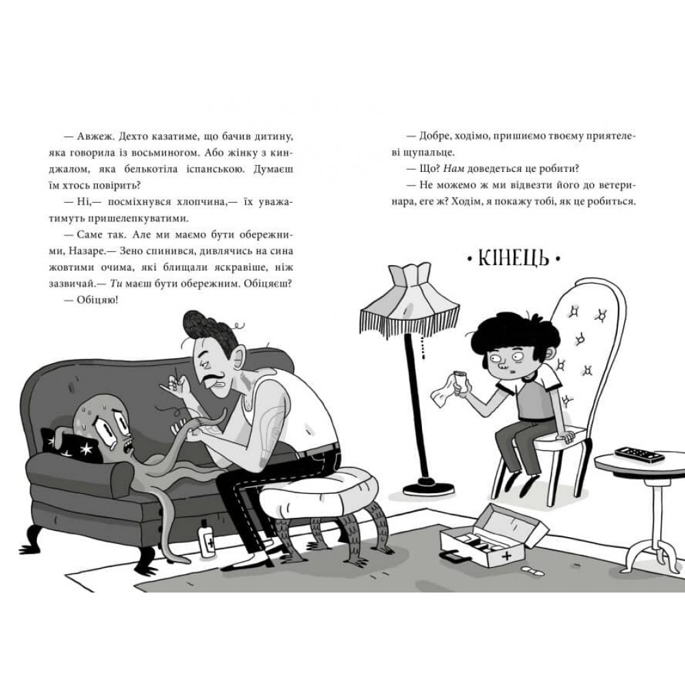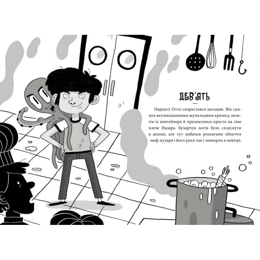 Цей твір перекладено за сприяння Центру книги та читання Міністерства культури Італії. Чи чули ви про татуювання, що оживають? Ні? А в родині Назара Маліка це звичайна річ. Тільки от хлопчикове татуювання — восьминіг Отто — неабияк полюбляє бешкетувати. І, звісно ж, потрапляти в халепи, як і цього разу! Тепер Назару доведеться рятувати друга, поки той не перетворився на чийсь обід. Ця книжка чудово підійде для дітей, які не люблять нудного читання, адже в ній є чимало гумору, пригод і смішних малюнків.