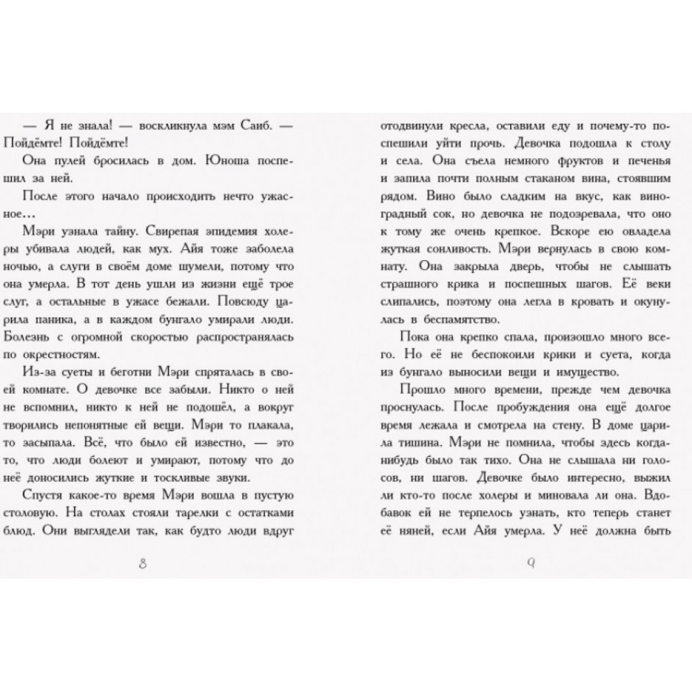 Страшна чума забирає життя всіх мешканців маєтку і лишає на поталу тільки маленьку дівчинку на ім’я Мері. Відтепер бідолаха має звикнути до нового житла і його власника, дядька Арчібальда Крейвена, якого за спиною охрестили горбуном, а ще навчитися давати собі ради.